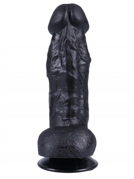 - Черный вибратор-реалистик на присоске №5 с проводным пультом - 16 см.