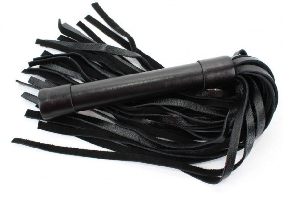 Плеть выполнена из натуральной кожи черного цвета. Ручка из натуральной гладкой кожи. Хвосты выполнены из нежной перчаточной натуральной кожи, количество хвостов - 23 штуки. Стильная плеть поможет воплотить эротические фантазии в реальность. Длина ручки - 17 см., диаметр - 2,5 см.
