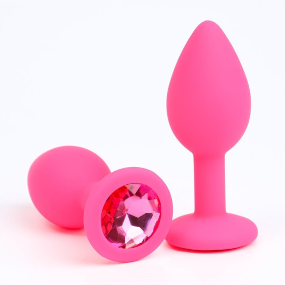 - Розовая анальная пробка с кристаллом - 7,2 см.