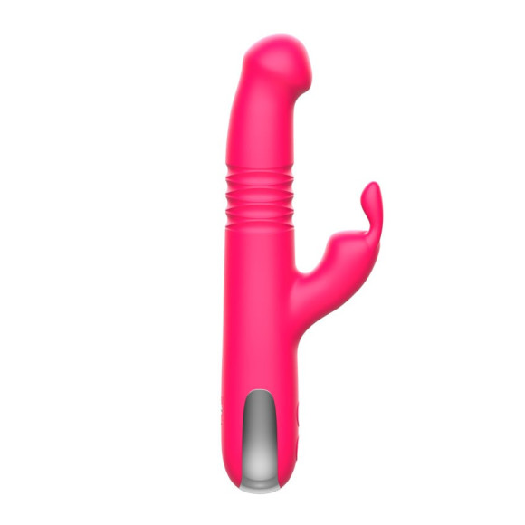 - Розовый вибратор-ротатор со стимулятором клитора и возвратно-поступательными движениями - 22,4 см.